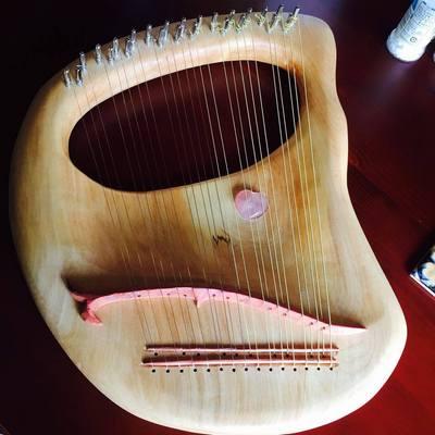 サイズ:約350×550㎜ 弦の数:25本 すべての音をだせます。(ソから2オクターブ上のソまで。) ピアノで言う黒鍵の音を左手で弾きます。弦の高さを調整してあります。 通常ワークでの製作費・・・90.000円 受注製作の場合・・・100,000
