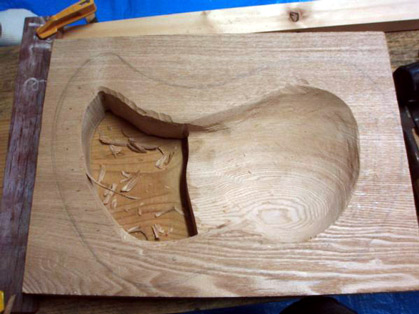 ひとつの板から丁寧に削り出して作ってゆく作業
